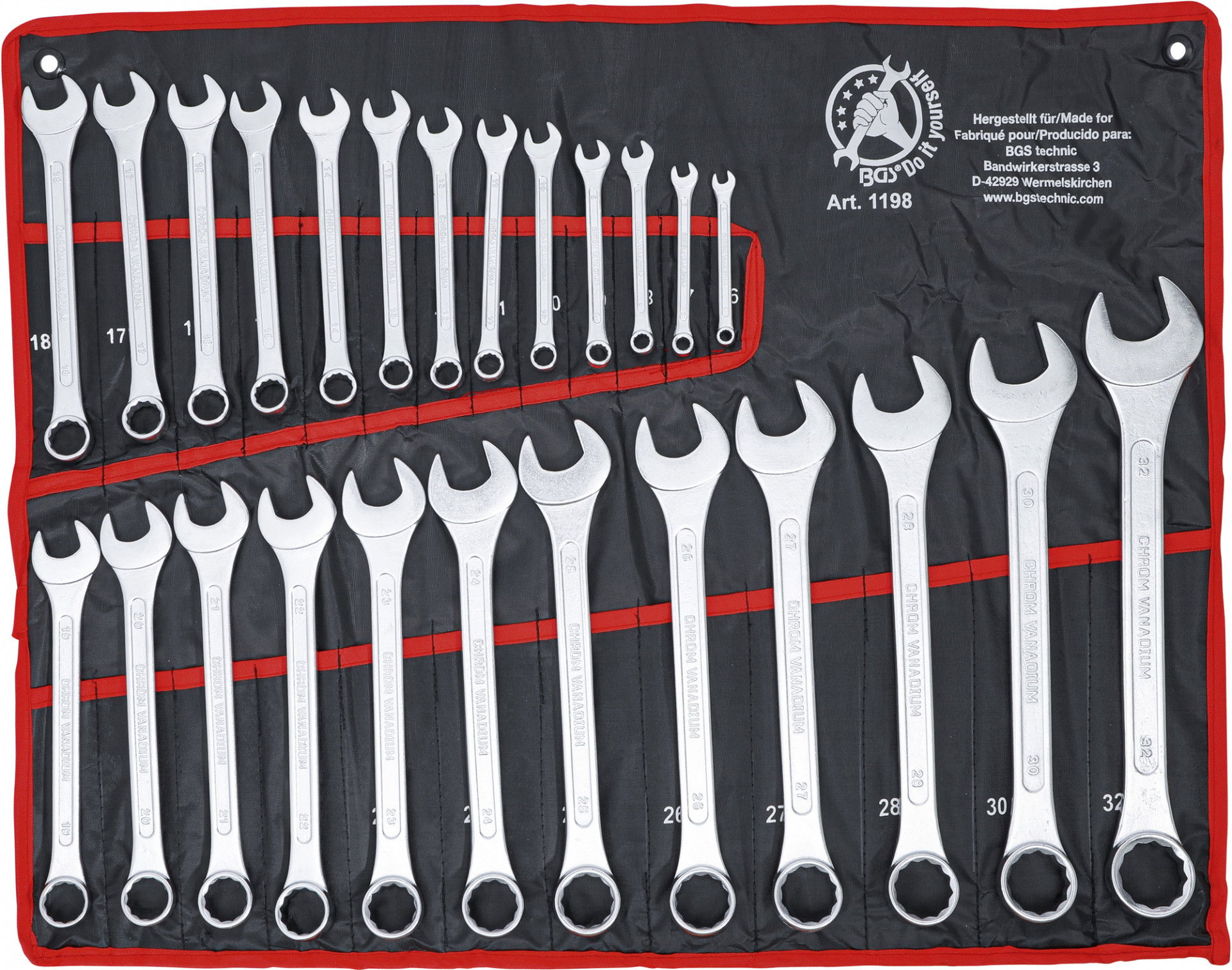 BGS Do it yourself 9-1198 csillag-villáskulcs készlet, metrikus, 25 részes