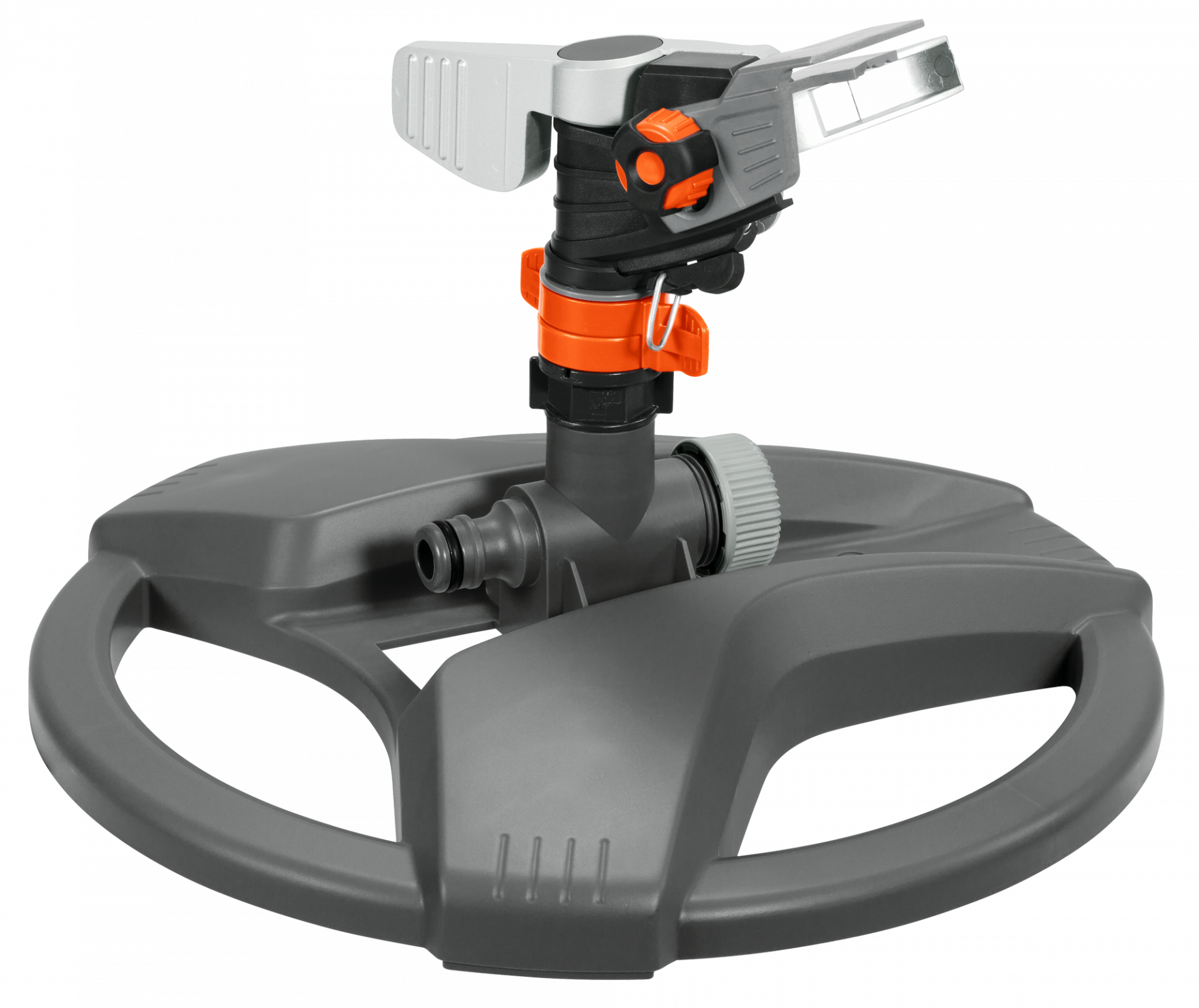 Az erős felépítésű, nagy teljesítményű esőztető stabilan áll a műanyag talpon. Nagyobb, max. 490 m2-es felületek öntözésére szolgál.