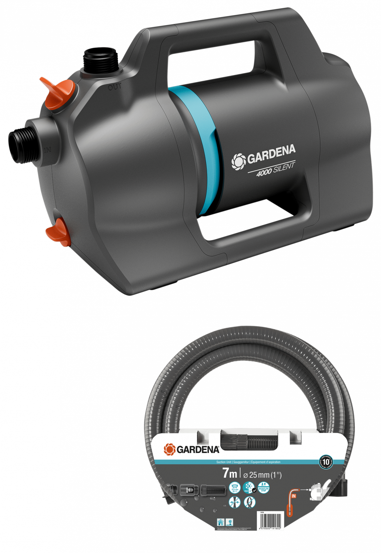 A készlet tartalmaz egy 7 m-es, 25 mm (1") szívótömlő készletet.